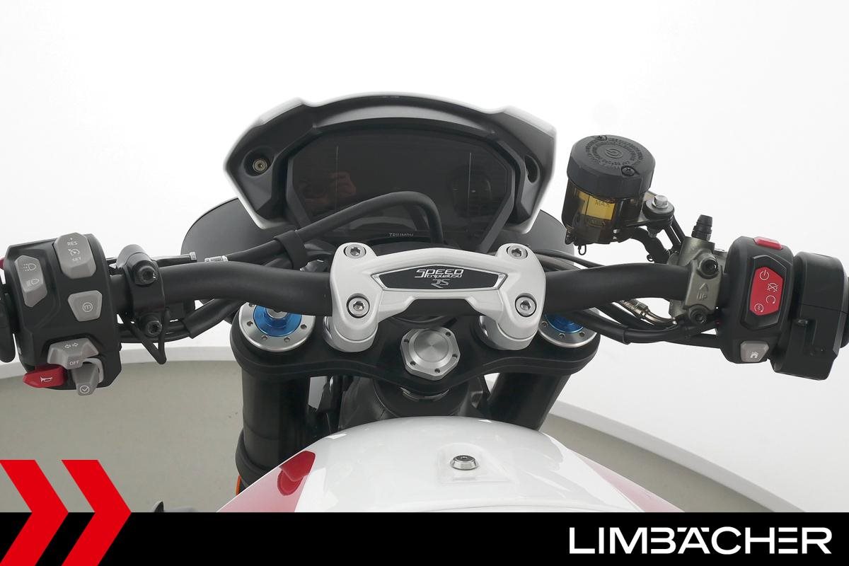 Eine scheckheftgepflegte Triumph Speed Triple 1050 RS aus erster Hand in sehr gepflegtem Zustand u.a. mit Arrow-Endschalldämpfer sowie Schaltassistenten.