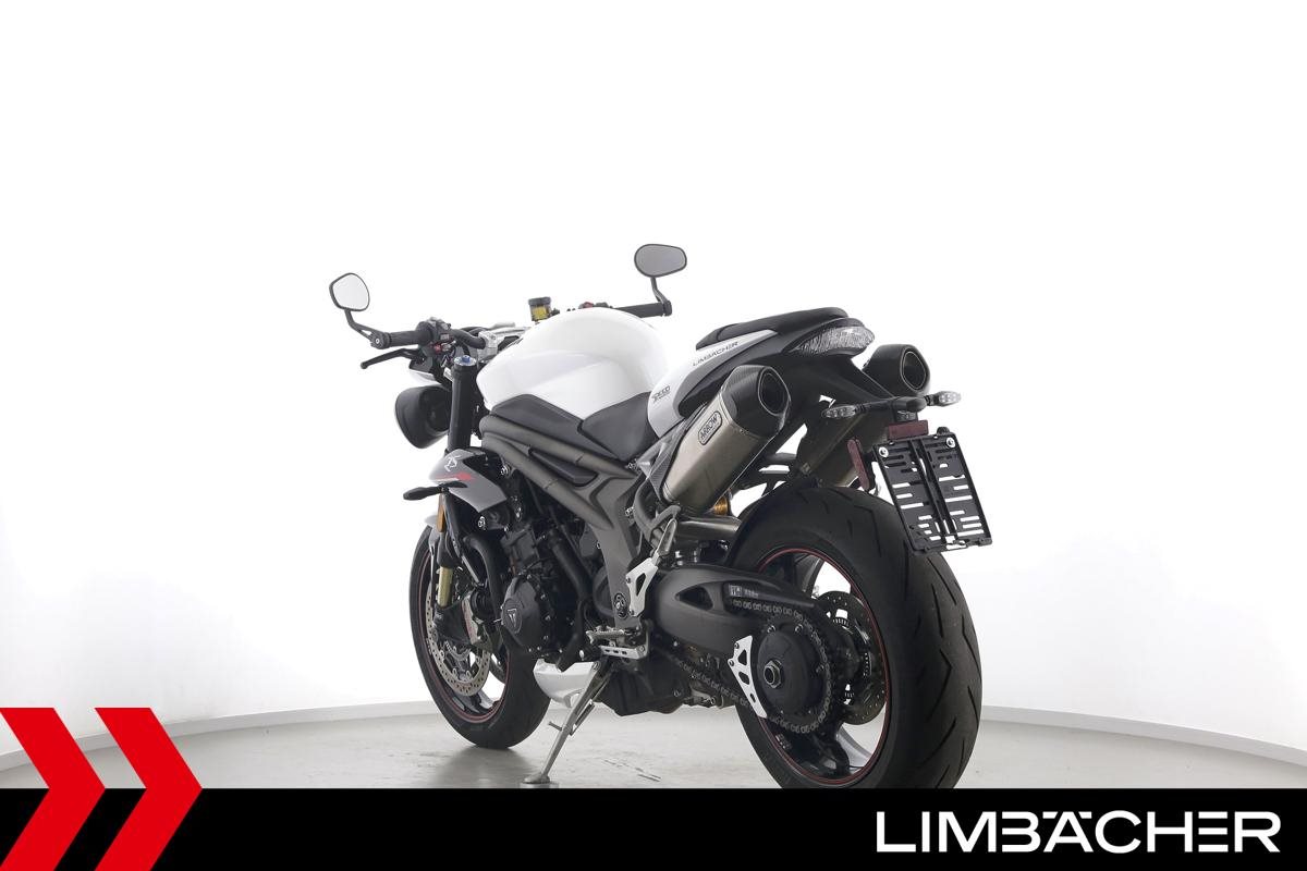 Eine scheckheftgepflegte Triumph Speed Triple 1050 RS aus zweiter Hand in sehr gepflegtem Zustand u.a. mit Arrow-Endschalldämpfer sowie Öhlins-Fahrwerk.