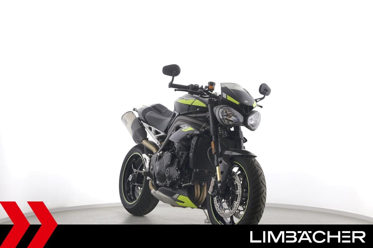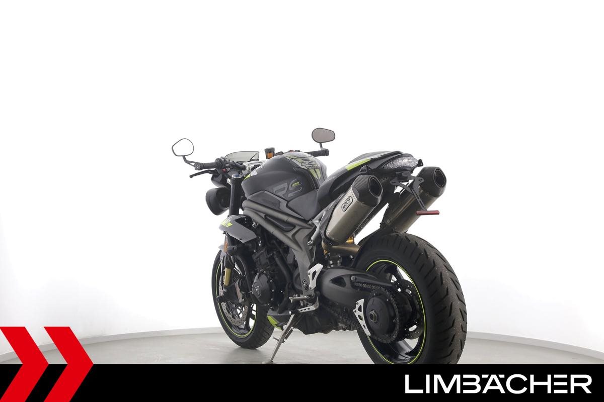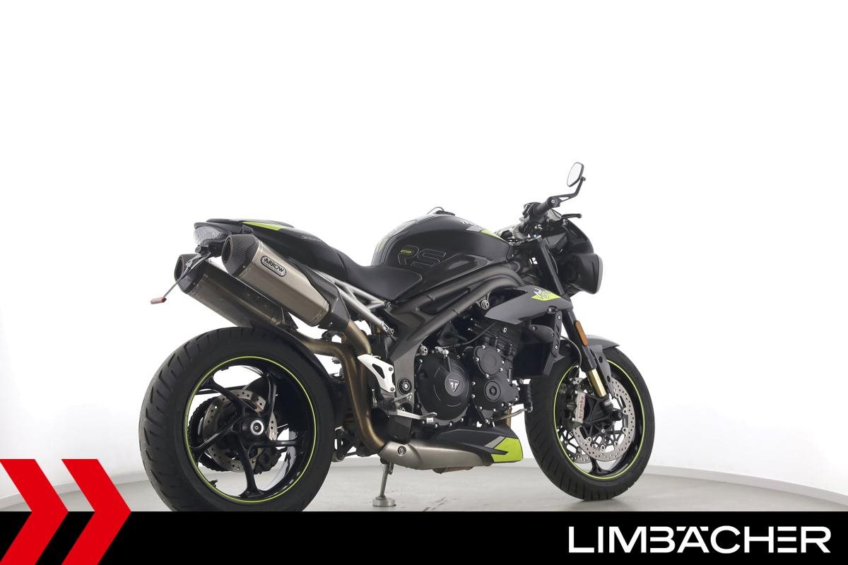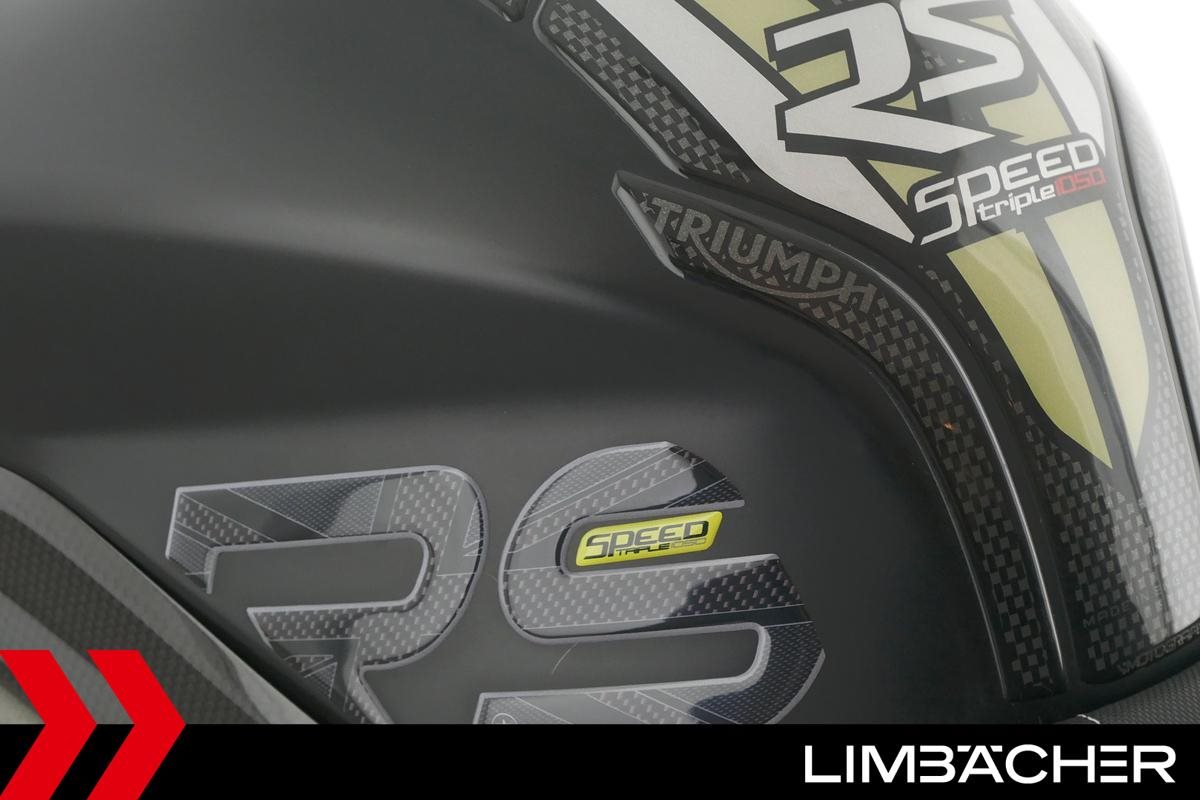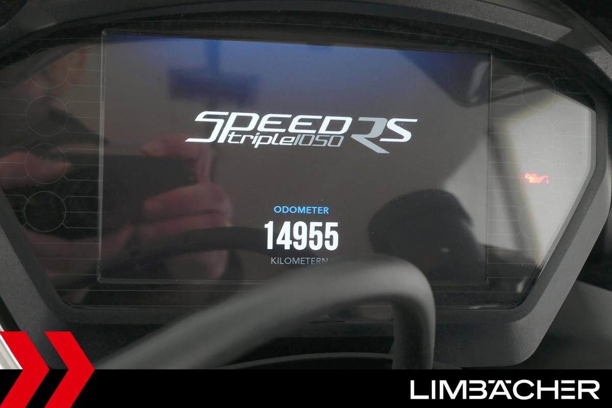 Eine scheckheftgepflegte Triumph Speed Triple 1050 RS in sehr gepflegtem Zustand u.a. mit Arrow-Endschalldämpfer sowie kurzem Kennzeichenhalter.