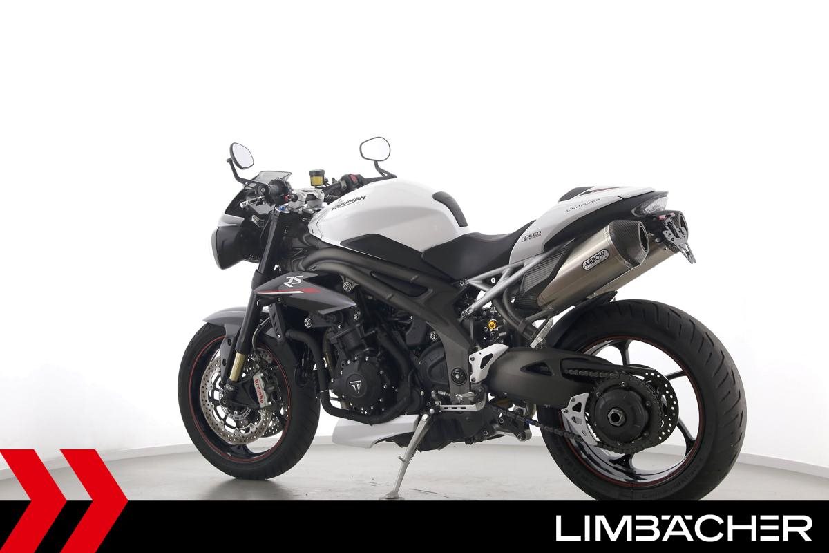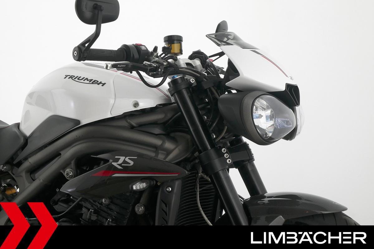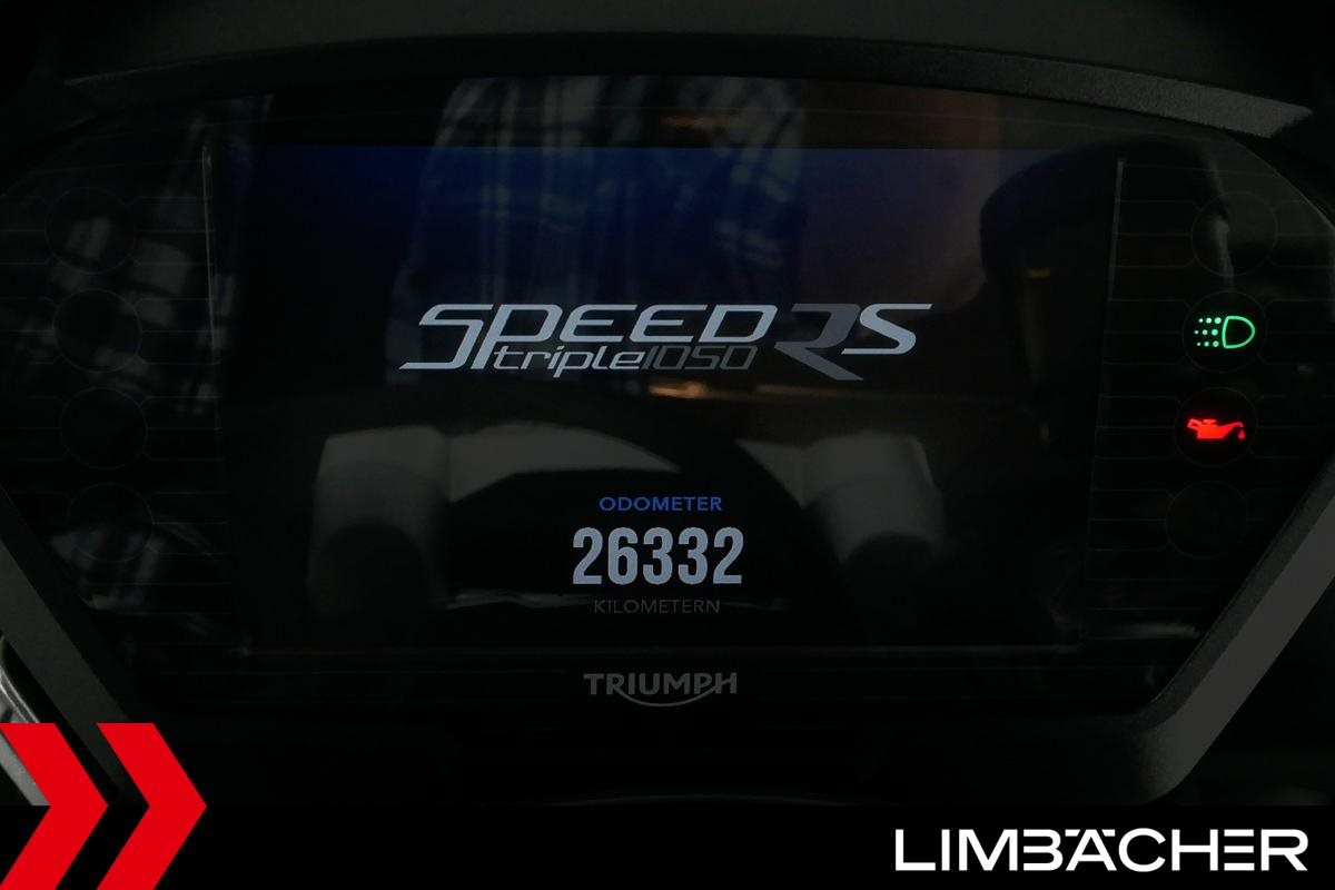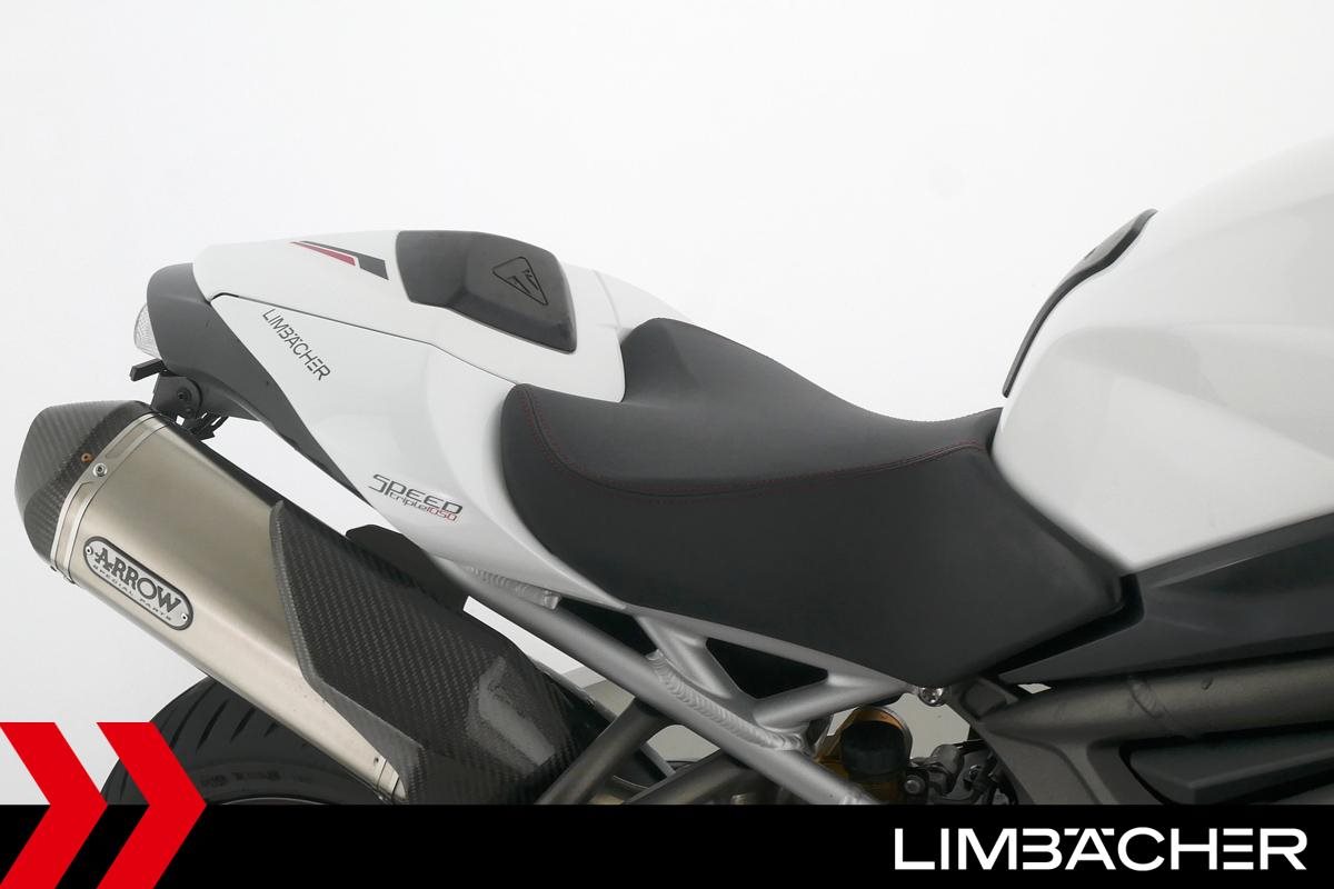 Eine scheckheftgepflegte Triumph Speed Triple 1050 RS in sehr gepflegtem Zustand u.a. mit Arrow-Endschalldämpfer sowie Öhlins-Fahrwerk.