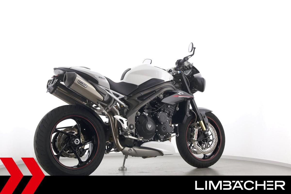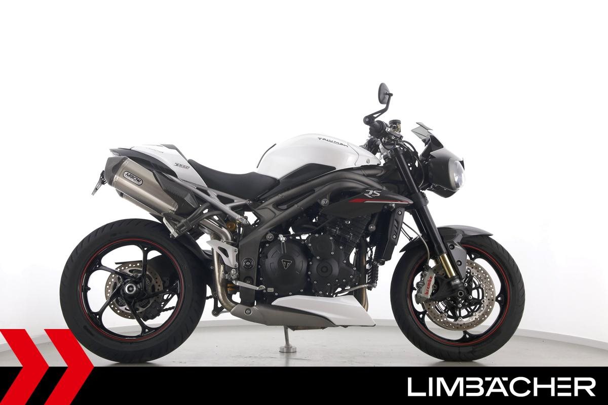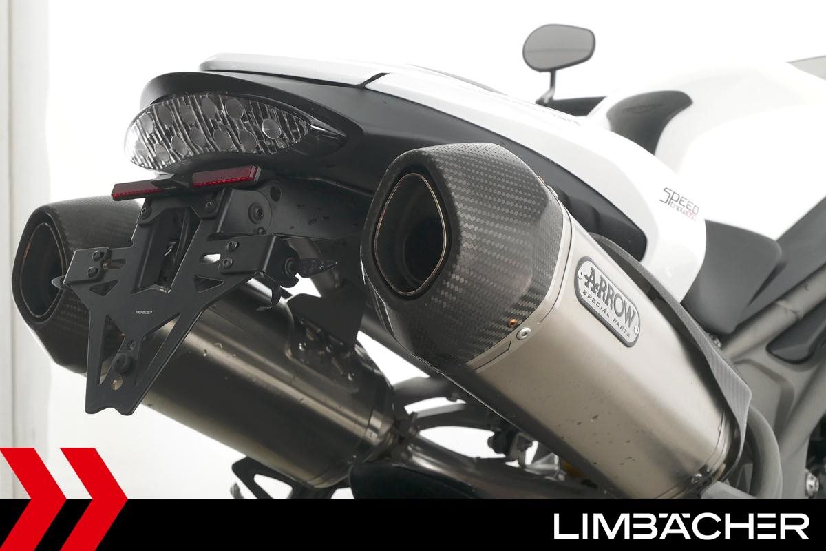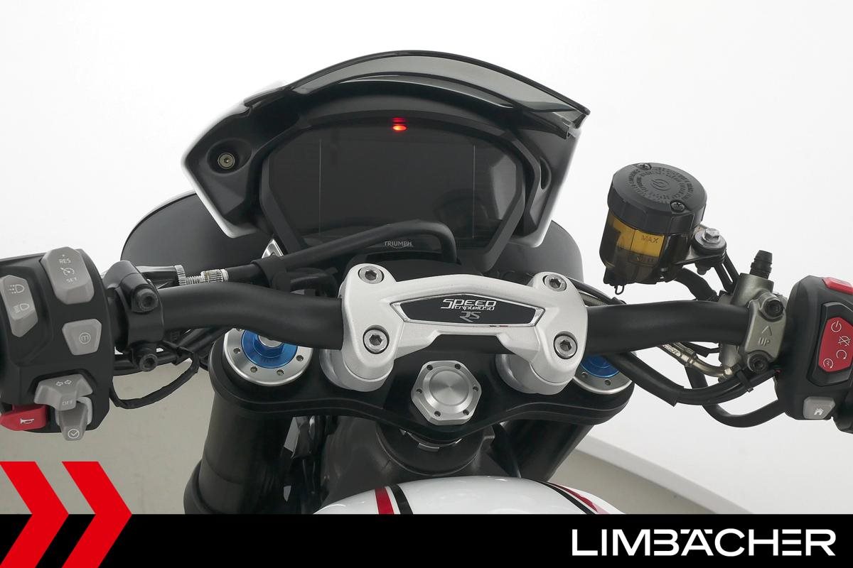 Eine scheckheftgepflegte Triumph Speed Triple 1050 RS in sehr gepflegtem Zustand u.a. mit Arrow-Endschalldämpfer sowie Öhlins-Fahrwerk.