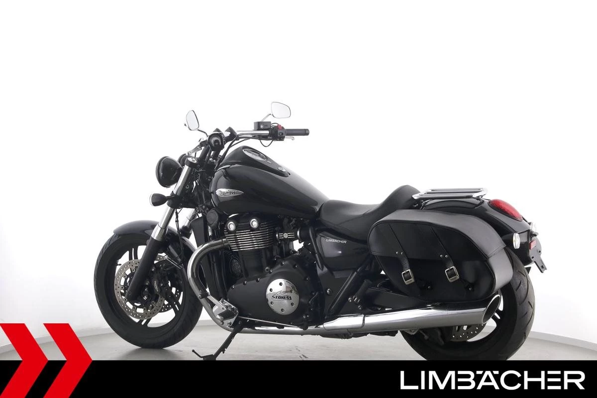 Eine Triumph Thunderbird Storm 1700 in sehr gepflegtem Zustand u.a. mit Chrom-Gepäcktrager sowie Triumph-Ledertaschen.