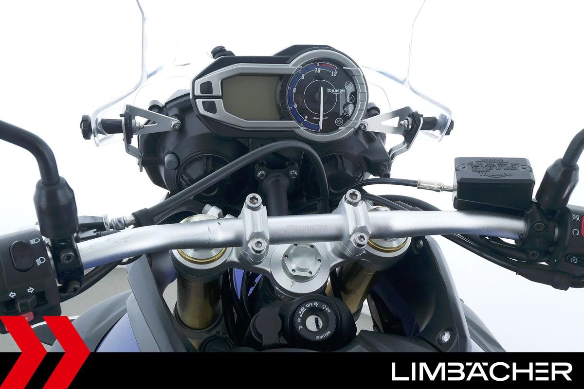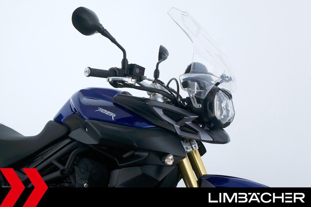 Eine scheckheftgepflegte Triumph Tiger 800 aus zweiter Hand in gepflegtem Zustand u.a. mit Arrow-Endschalldämpfer sowie Givi-Topcase.