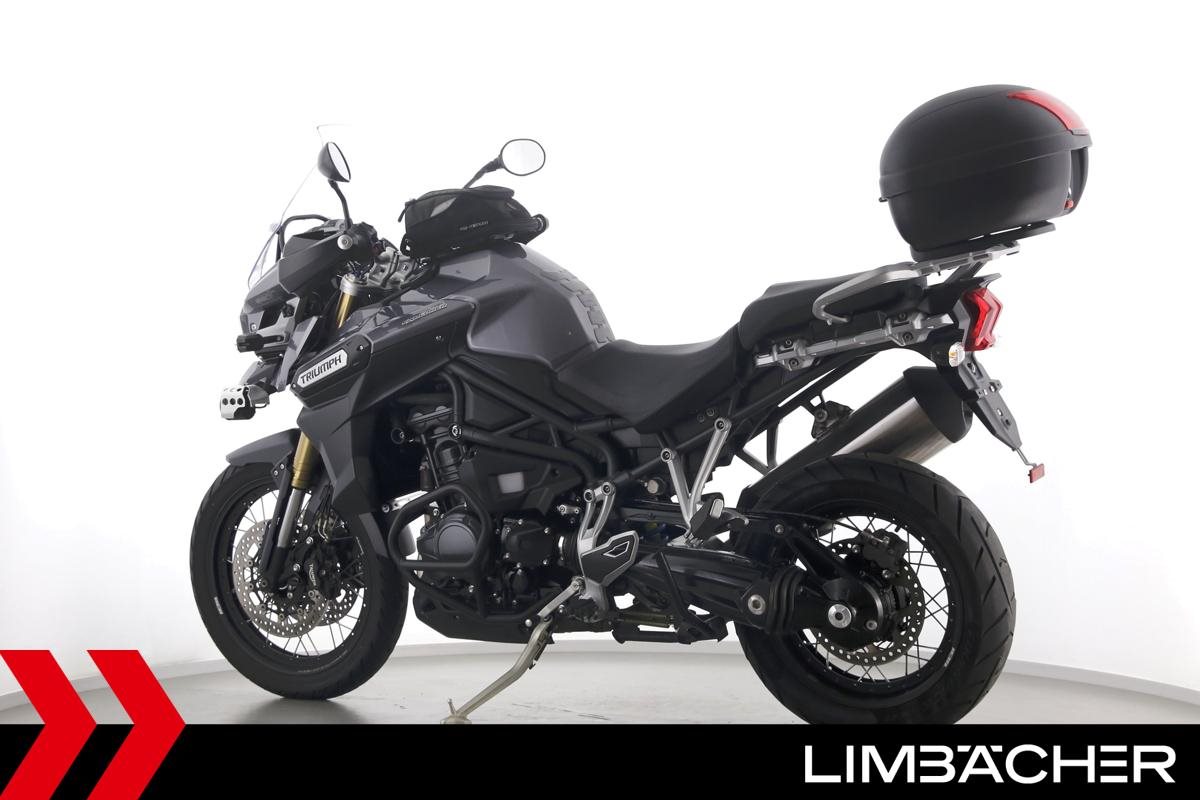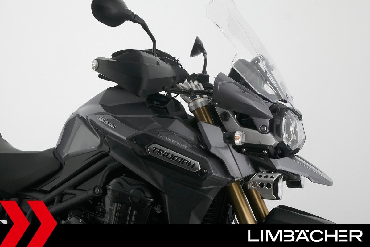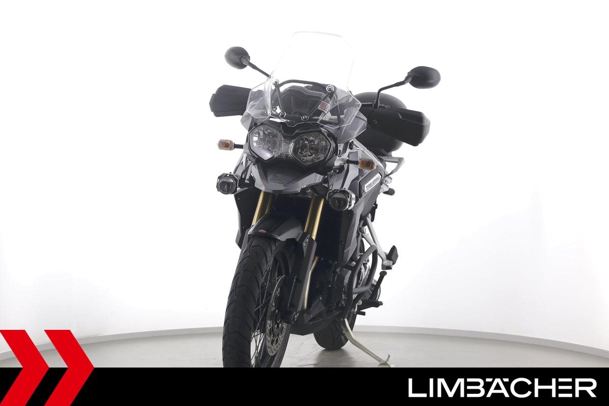 Eine Triumph Tiger Explorer 1200 aus erster Hand in gepflegtem Zustand u.a. mit Sturzbügeln in schwarz sowie Zusatzscheinwerfern.