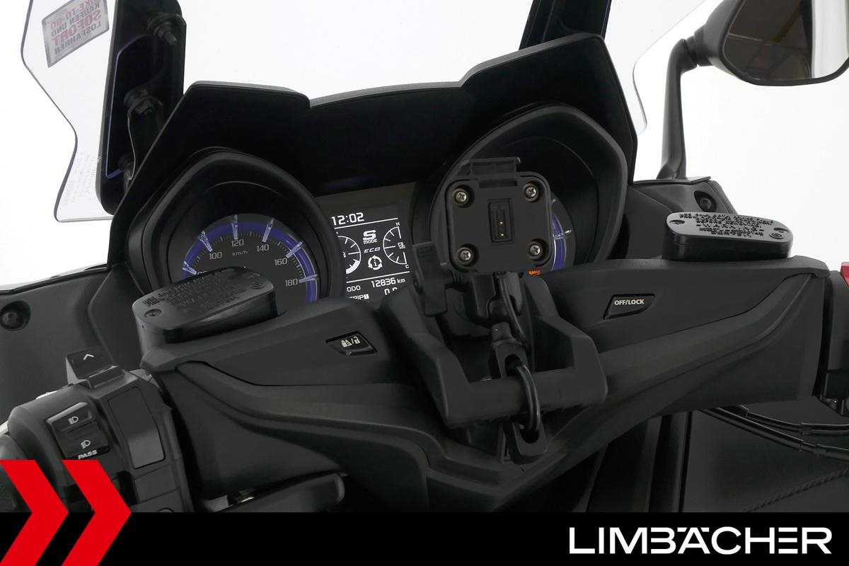 Ein scheckheftgepflegter Yamaha TMAX 560 aus erster Hand in gepflegtem Zustand u.a. mit Yamaha-Topcase und Gilles-Hebelschützern.