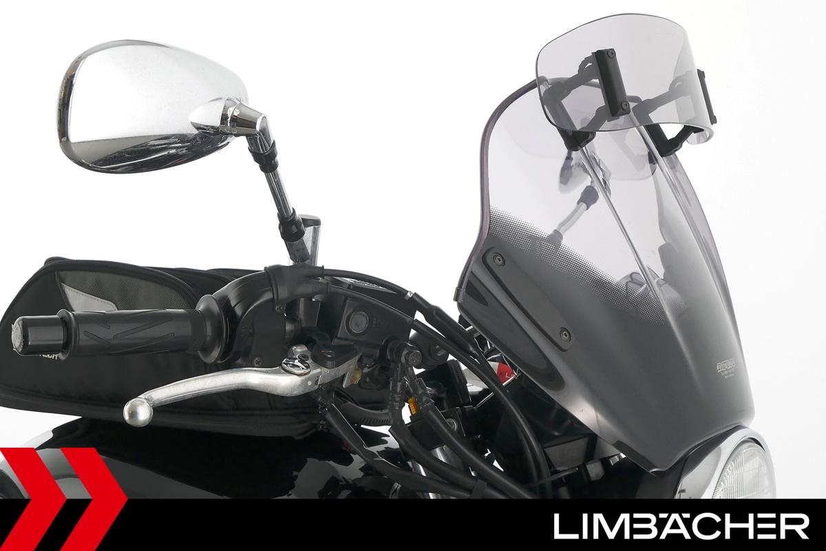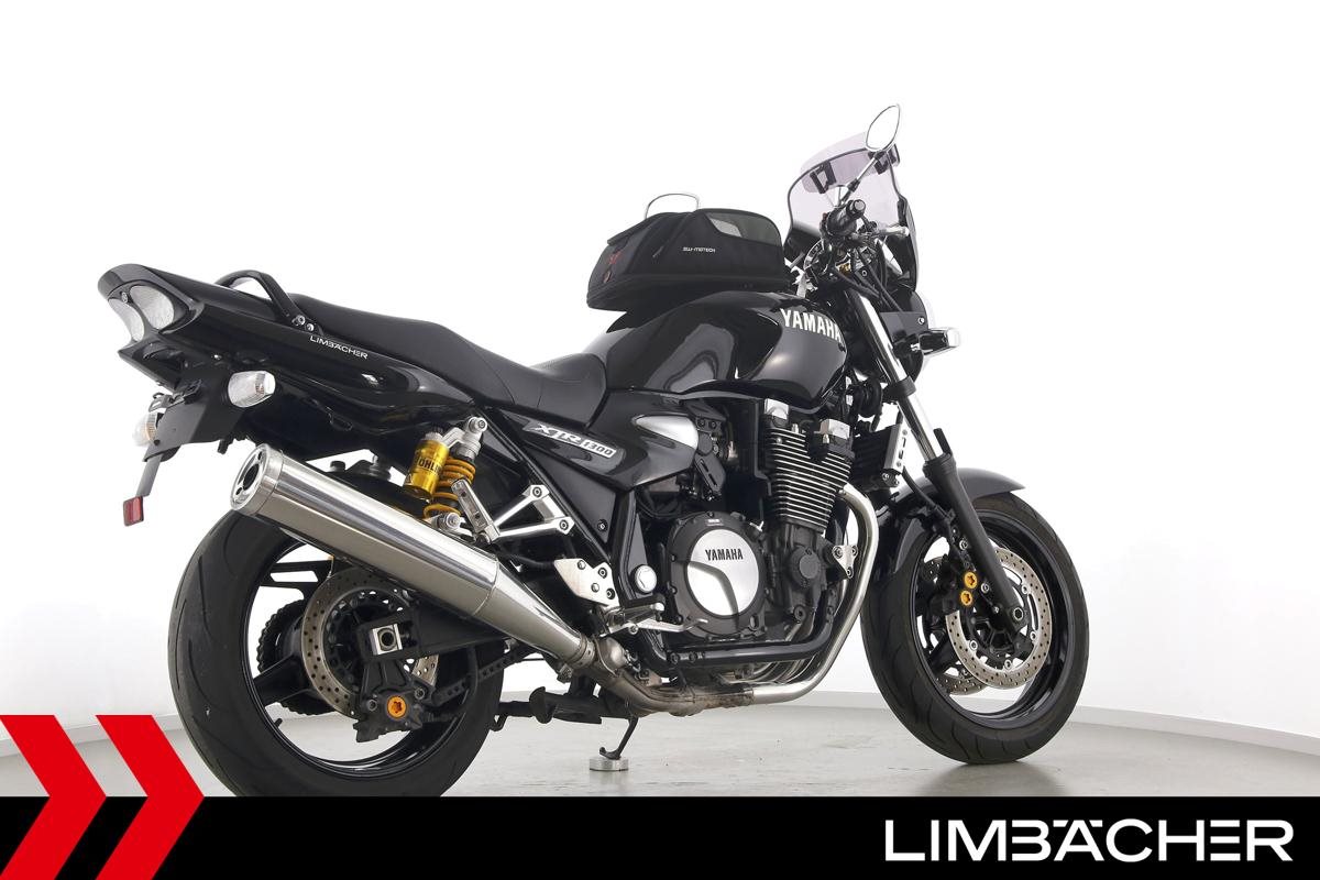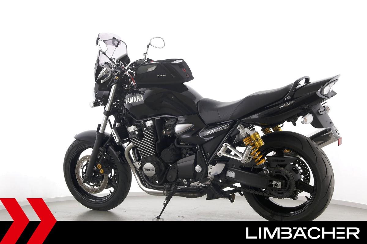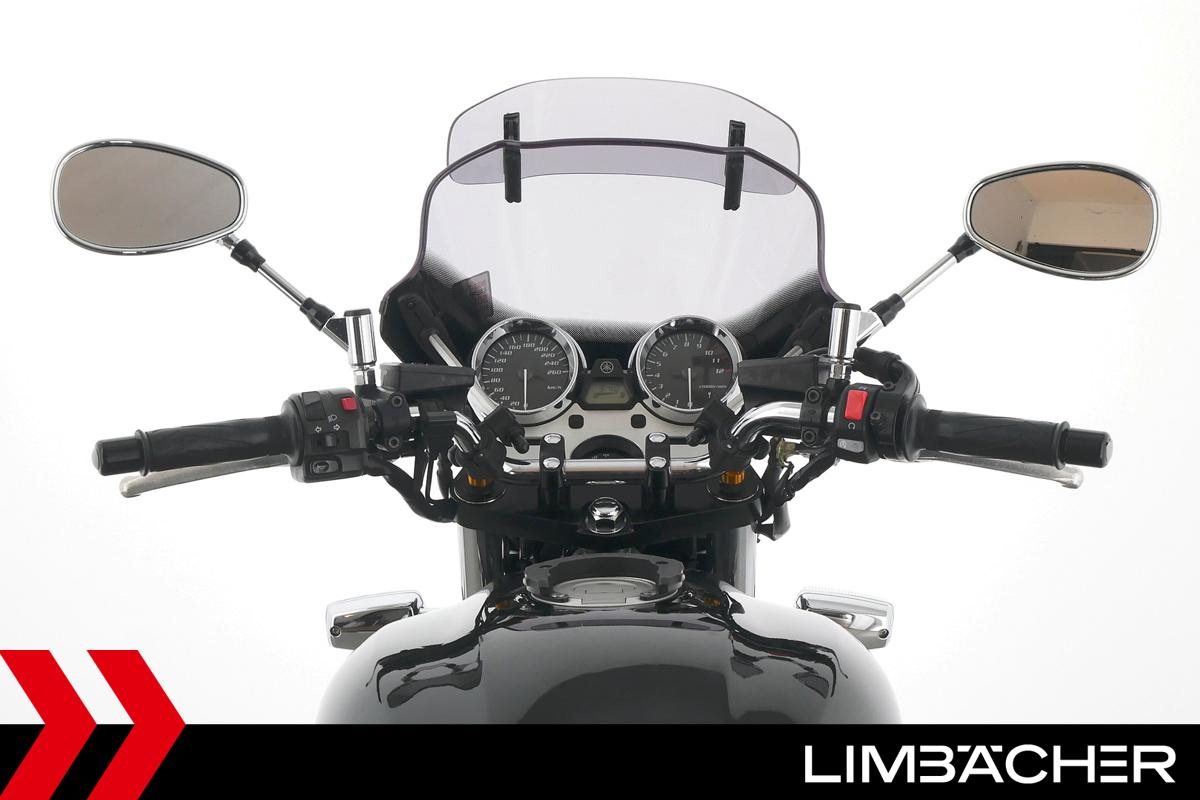Eine Yamaha XJR 1300 in sehr gepflegtem Zustand u.a. mit MRA-Spoiler-Windschild und Tankrucksack.