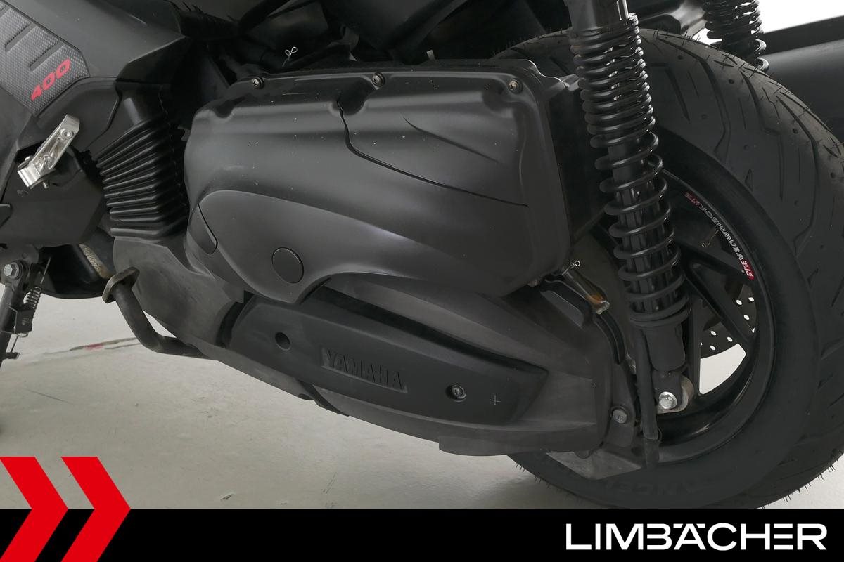 Ein scheckheftgepflegter Yamaha XMAX 400 in gepflegtem Zustand u.a. mit kurzem Kennzeichenhalter sowie grossem Staufach unter der Sitzbank.