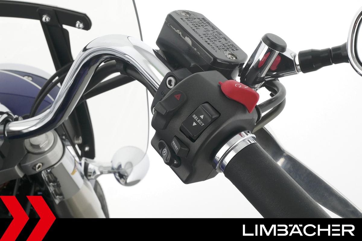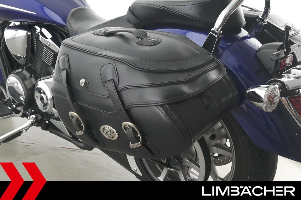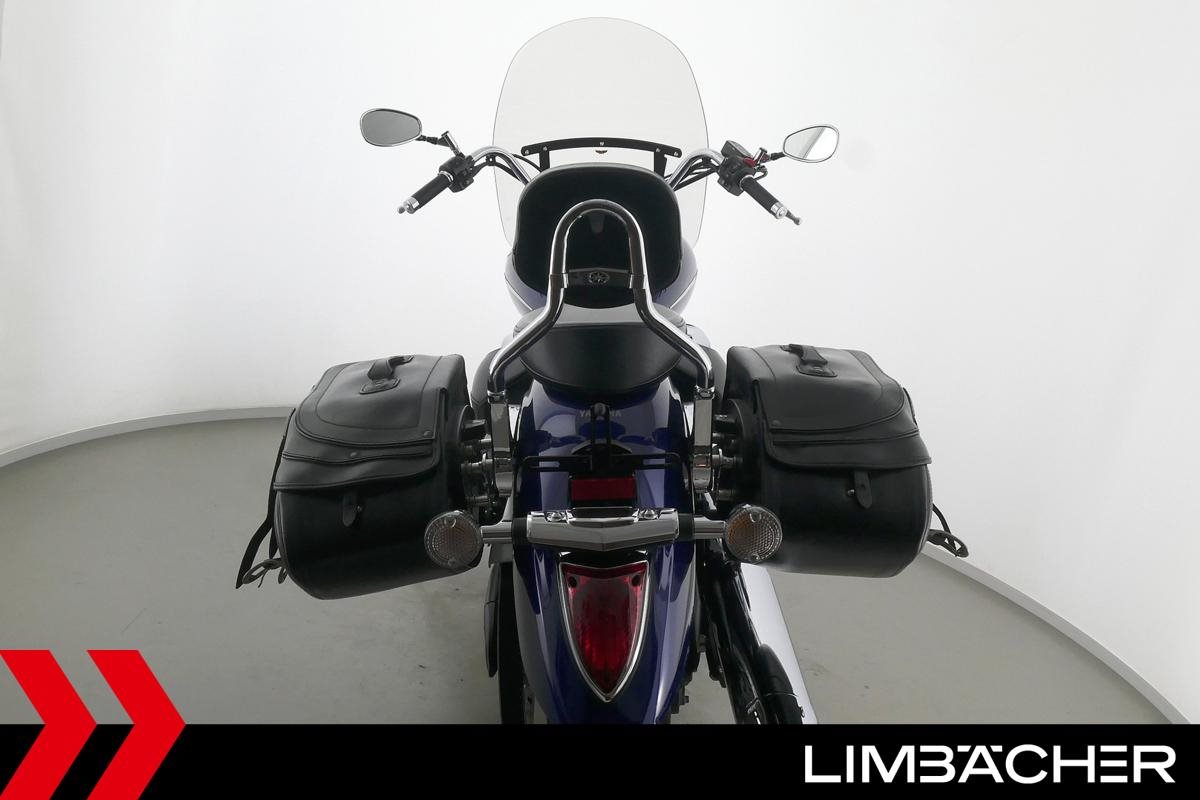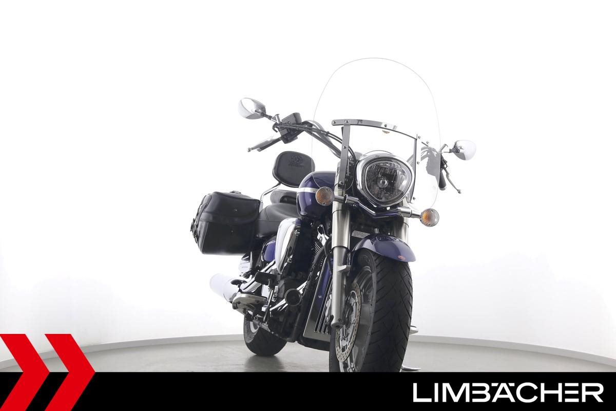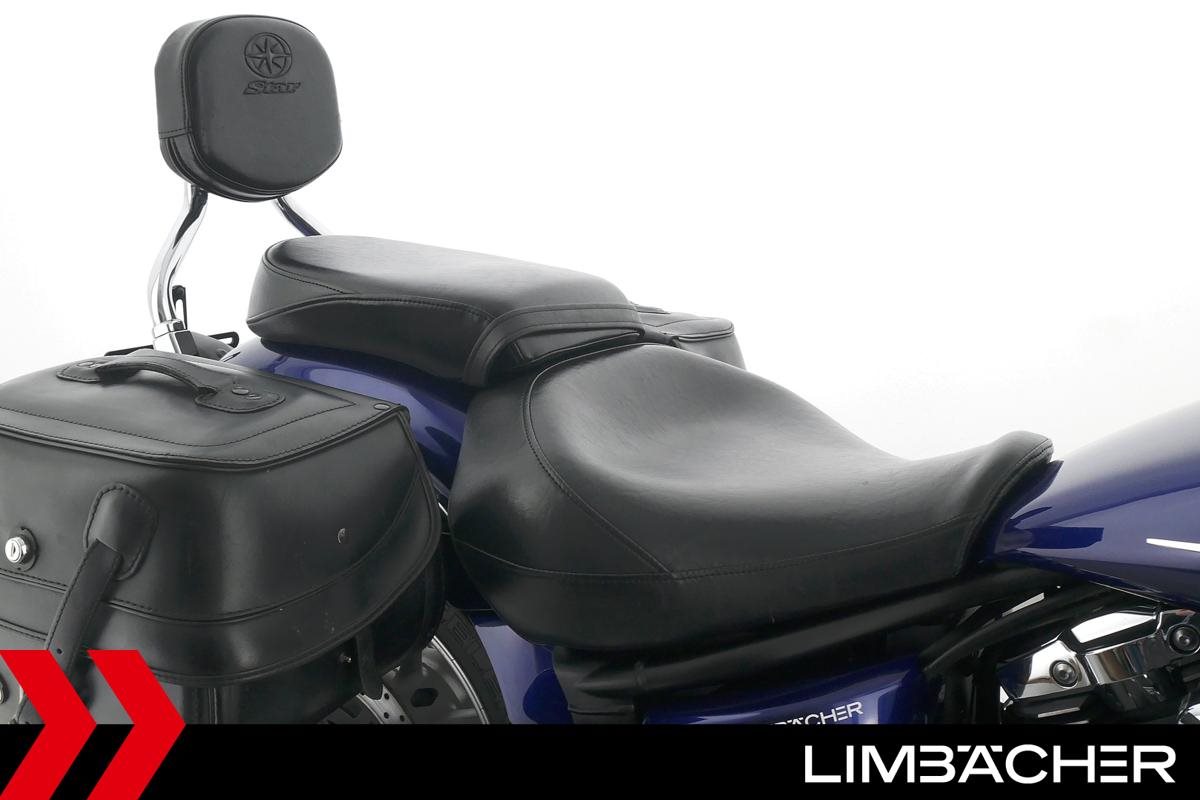 Eine Yamaha XVS 1300 A Midnight Star in sehr gepflegtem Zustand u.a. mit Hepco&Becker-Lederpacktaschen und Touringscheibe.