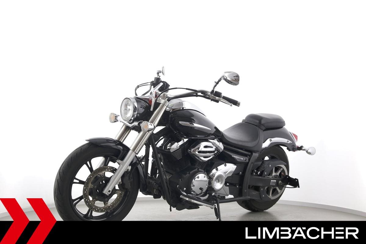 Eine Yamaha XVS 950 A Midnight Star in gebrauchtem Zustand mit seitlichem Kennzeichenhalter.