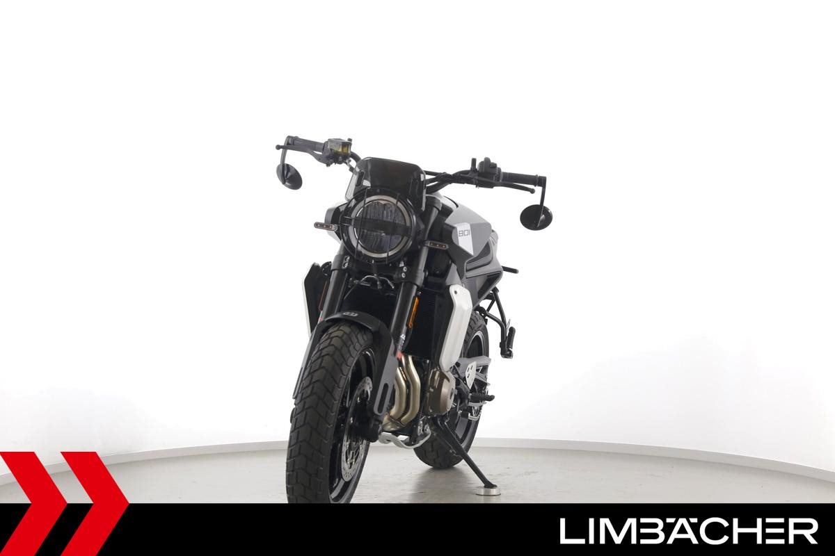 Eine Husqvarna Svartpilen 801 als Neufahrzeug u.a. mit Akrapovic-Endschalldämpfer und Ergo-Sitzbank.